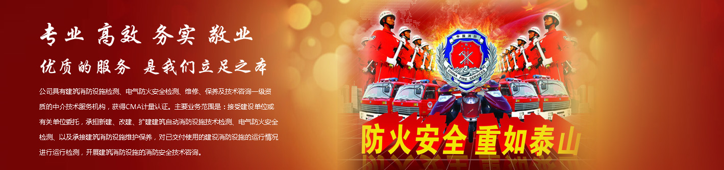公司具有建筑消防設(shè)施檢測、電氣防火安全檢測、維修、保養(yǎng)及技術(shù)咨詢一級資質(zhì)的中介技術(shù)服務(wù)機構(gòu),獲得CMA計量認證。主要業(yè)務(wù)范圍是:接受建設(shè)單位或有關(guān)單位委托,承擔(dān)新建、改建、擴建建筑自動消防設(shè)施技術(shù)檢測、電氣防火安全檢測、以及承接建筑消防設(shè)施維護保養(yǎng),對已交付使用的建設(shè)消防設(shè)施的運行情況進行運行檢測,開展建筑消防設(shè)施的消防安全技術(shù)咨詢。公司設(shè)辦公室、總工辦、財務(wù)部、檢測部、維保部等職能機構(gòu),擁有一